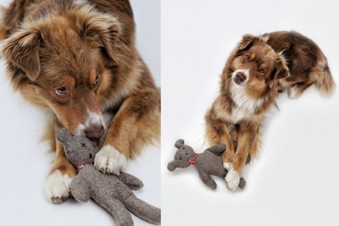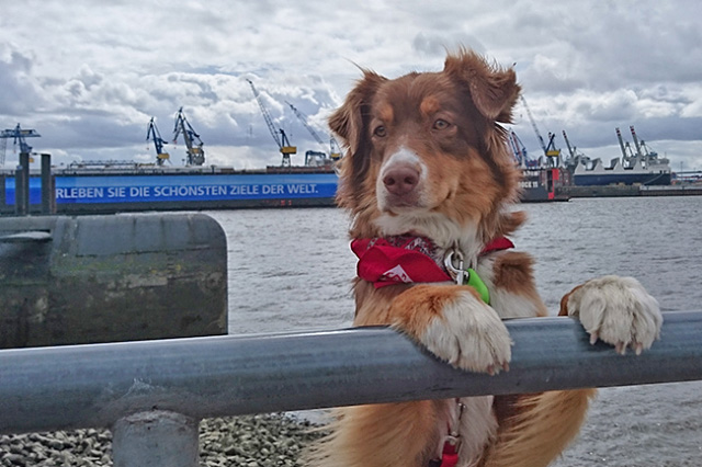 Der Australian Shepherd Toffey aus Hamburg wird von einer erfahrenen Filmhundetrainerin angeleitet.