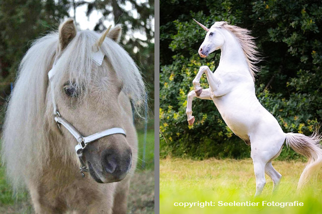 Selbstverständlich stehen auch Einhörner in der Filmtierzentrale zur Verfügung. Hier ein Minipony und ein Araber.