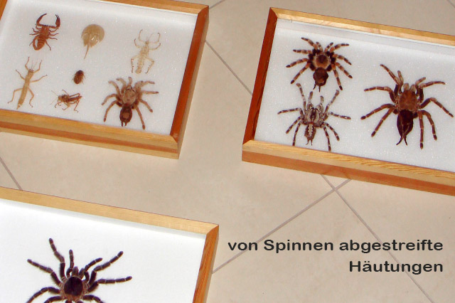 Das Foto zeigt die abgelegten Häute (Exuvien) von Spinnen und Insekten. Mit Häutungen und Präparaten werden Insekten gedoubelt, die ihre Rolle im Film scheinbar nicht überleben.