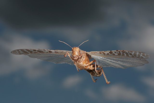 Selbstverständlich arbeiten wir viel häufiger mit lebenden Wanderheuschrecken, als mit Präparaten. Falls ein Tier in seiner Filmrolle stirbt, wird ein Präparat oder eine Häutung eingesetzt.