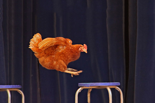 Ja, auch Hühner lassen sich wunderbar für Filmszenen trainieren.